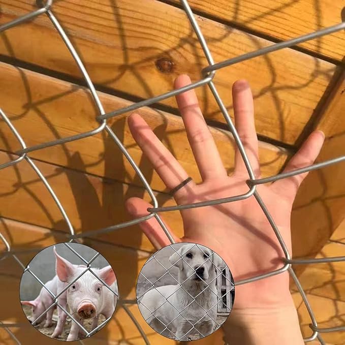 Size: The mesh size of the wire mesh fence is 2.4 inches (6 cm), 2.8 inches (7 cm), 3.1 inches (8 cm), wire diameter is 0.09 inches (2.3 mm), width 4.9 ft (1.2 m), 5.9 ft (1.5 m), length is 6